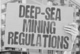 "Deep-sea mining regulations" on worn cardboard. Highlights international agreements governing seabed mineral extraction. SEABED. AGREEMENTS. EXTRACTION. MINERALS. PROTECTION. JURISDICTION. GOVERNANCE