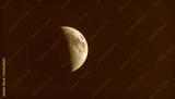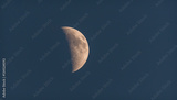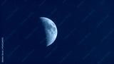 Moonshine in the dusky evening sky. Half moon shines in evening deep blue sky.