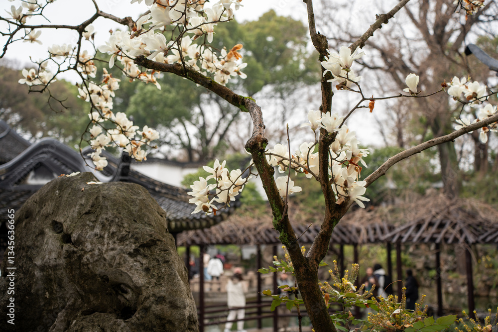 Traditional Chinese garden in Suzhou, China in the spring