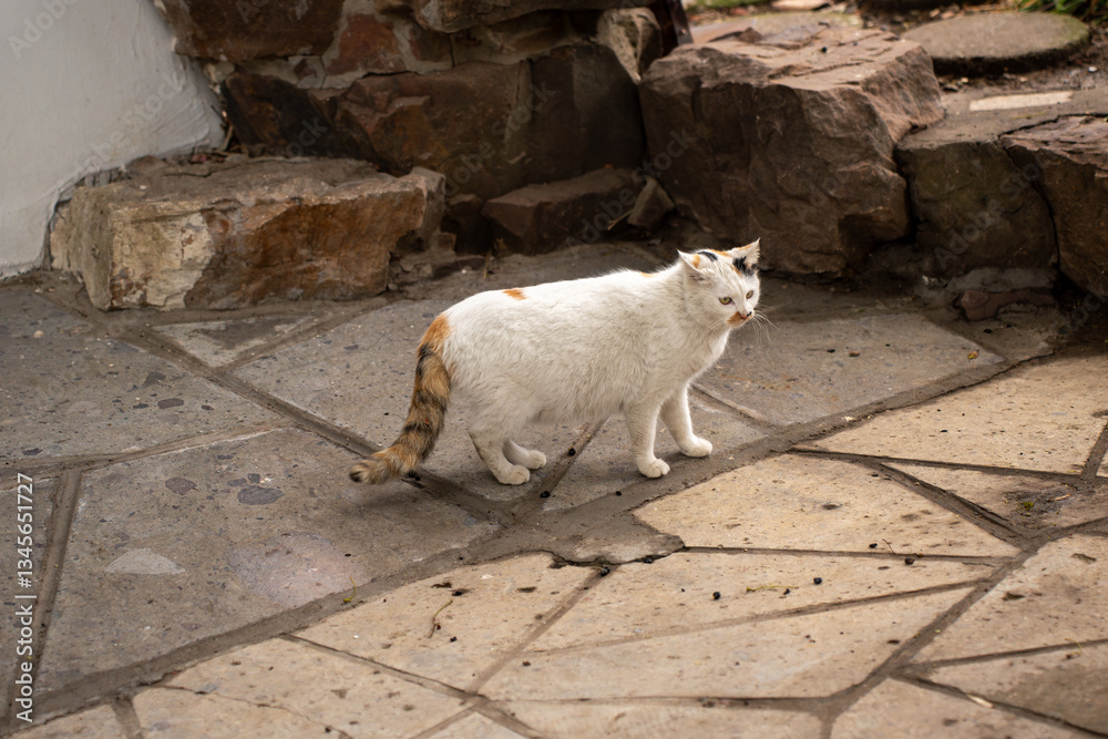 Cat hanging around in a garden