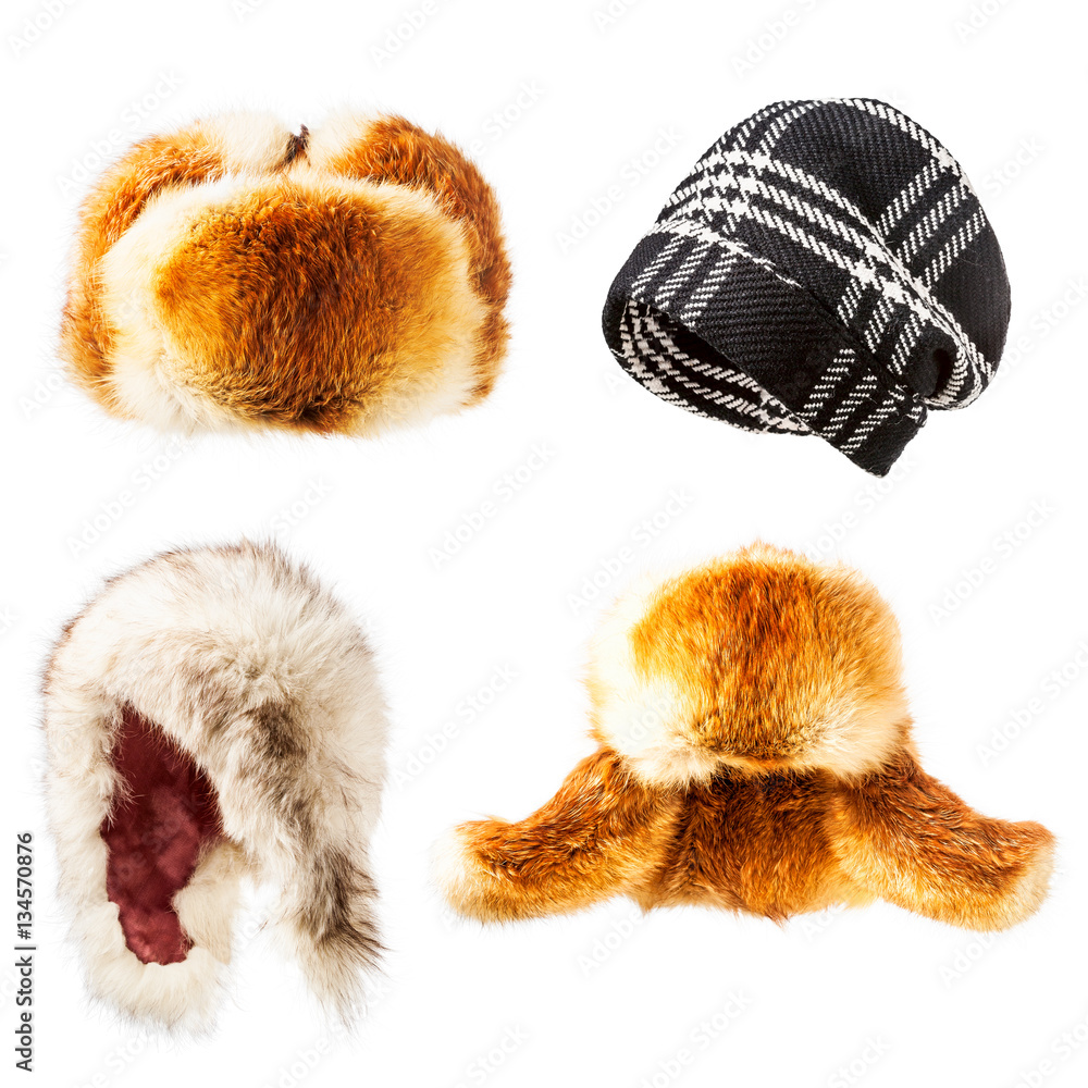 Wool and fur hats set