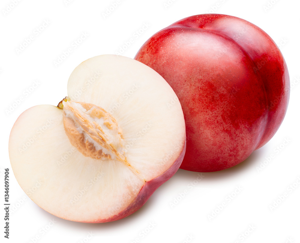 Red Nectarine isolated on white background, Fresh Nectarine on White Background With clipping path.