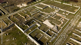 Aerial view of the ruins of an ancient Roman city in the archaeological area of Alba Fucens, in the municipality of Massa d'Albe, in the province of L'Aquila, Abruzzo, Italy.