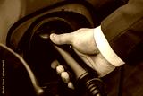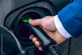 Man at gas station holding nozzle refueling his car with unleaded petrol