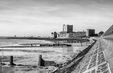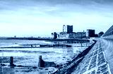 Medieval Norman Castle in Carrickfergus near Belfast, Northern Ireland, and Belfast Lough during a low tide