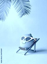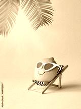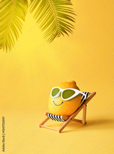 Lemon in sunglasses relaxes on lounge chair on beach. Summer concept.