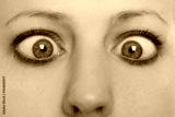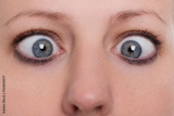 Nahaufnahme, Frau leidet unter Strabismus, Schielen