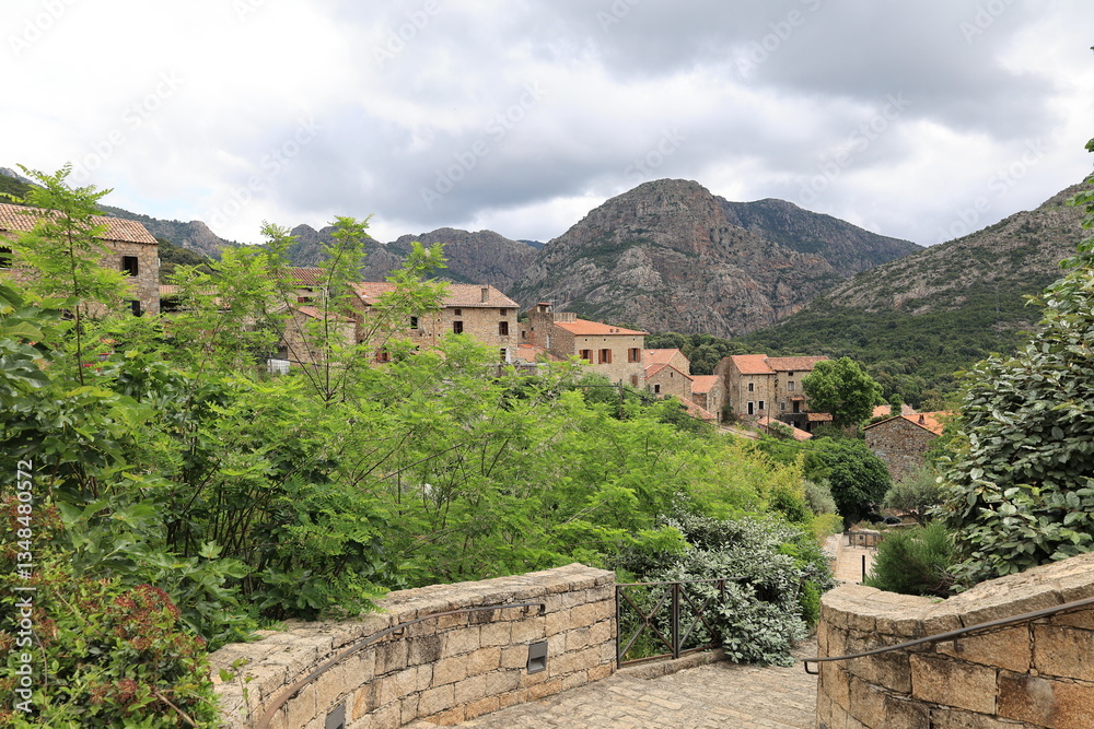 Kleines Bergdorf in den Bergen der Französichen Mittelmeerinsel Korsika