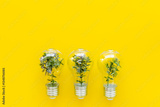 Green plant in a light bulbs, top view. Renewable energy and environmental care