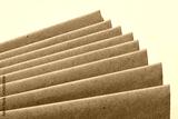 A close-up, angled shot of several brown paper compost bags stacked neatly against a light background