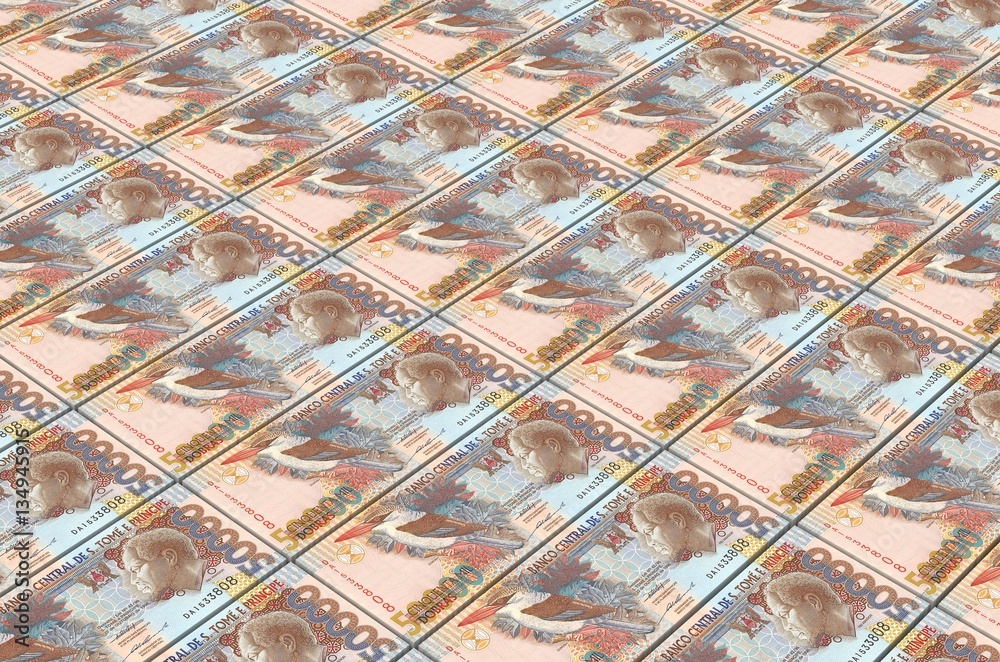 St. Thomas Dobras bills stacks background. 3D illustration.