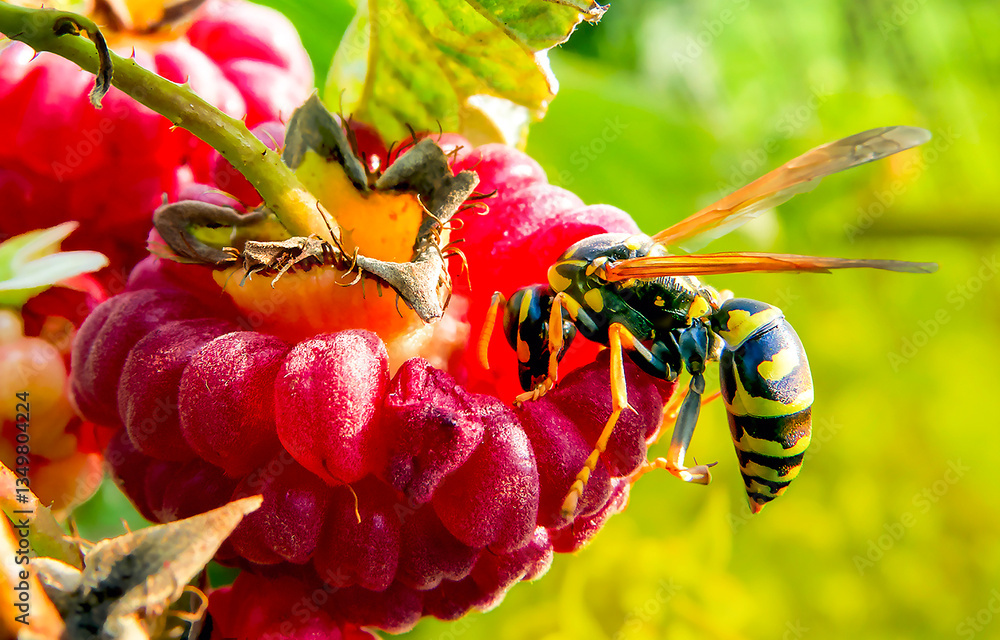 Bee on a raspberry. Bee and raspberry