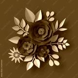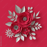 3d illustration, decorative red paper flowers, Valentine's day background, floral composition