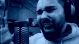 Close up upset Caucasian vlogger male host gamer guy broadcasting radio microphone addict man talking at home e-sport anxious influencer losing virtual pc game stress blogger defeat online competition