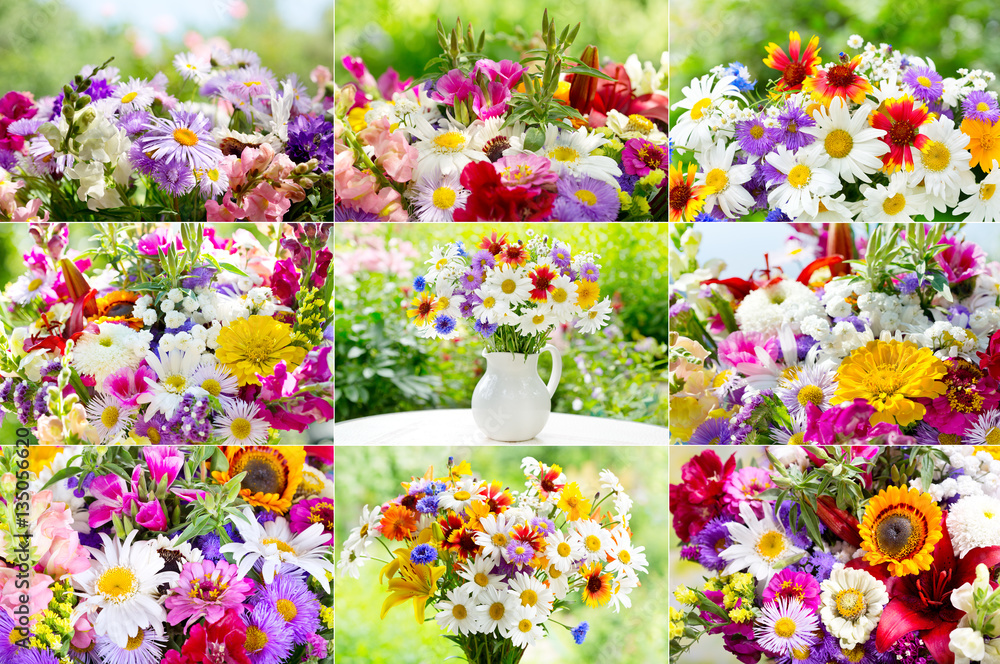 collage of bouquets of summer flowers