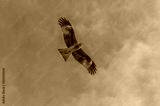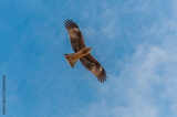 Hawk in flight blue sky