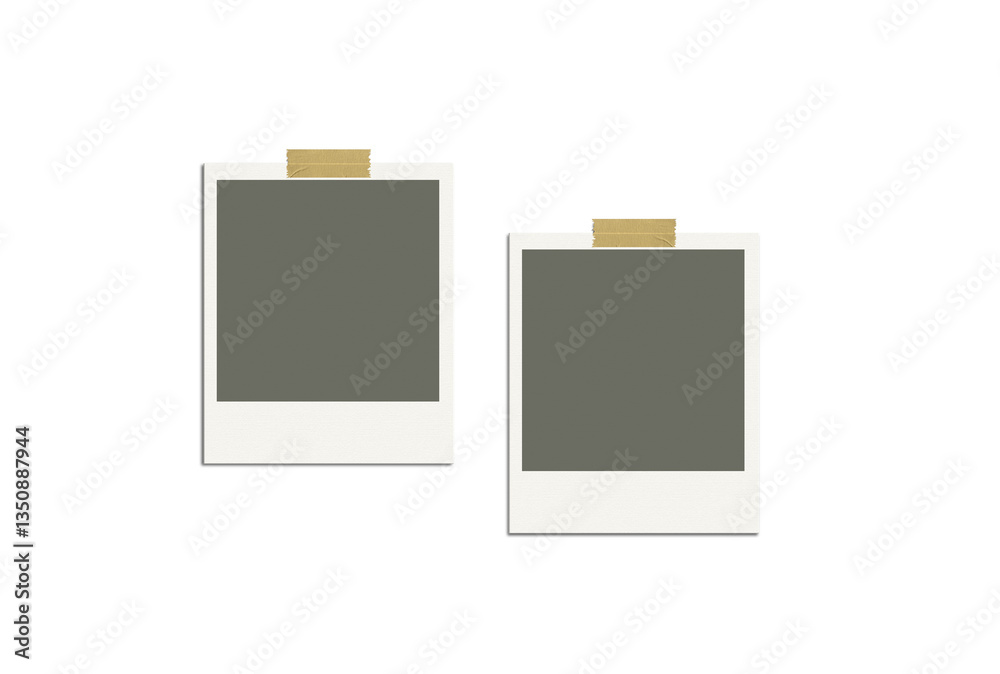 Two blank instant photos on a white surface. Suitable for school projects, scrapbooking, retro designs, and creative concepts about memories.