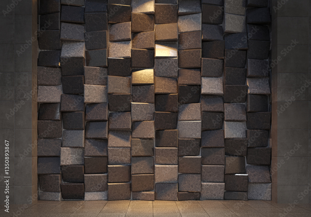 Wall of brown stone tiles adds depth and texture to architecture or interior design projects. Perfect for background or pattern concepts.