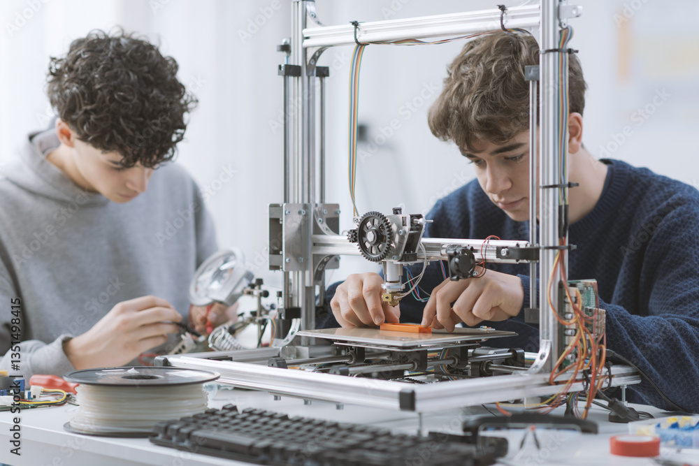 Students learning how to use a 3D printer in the lab