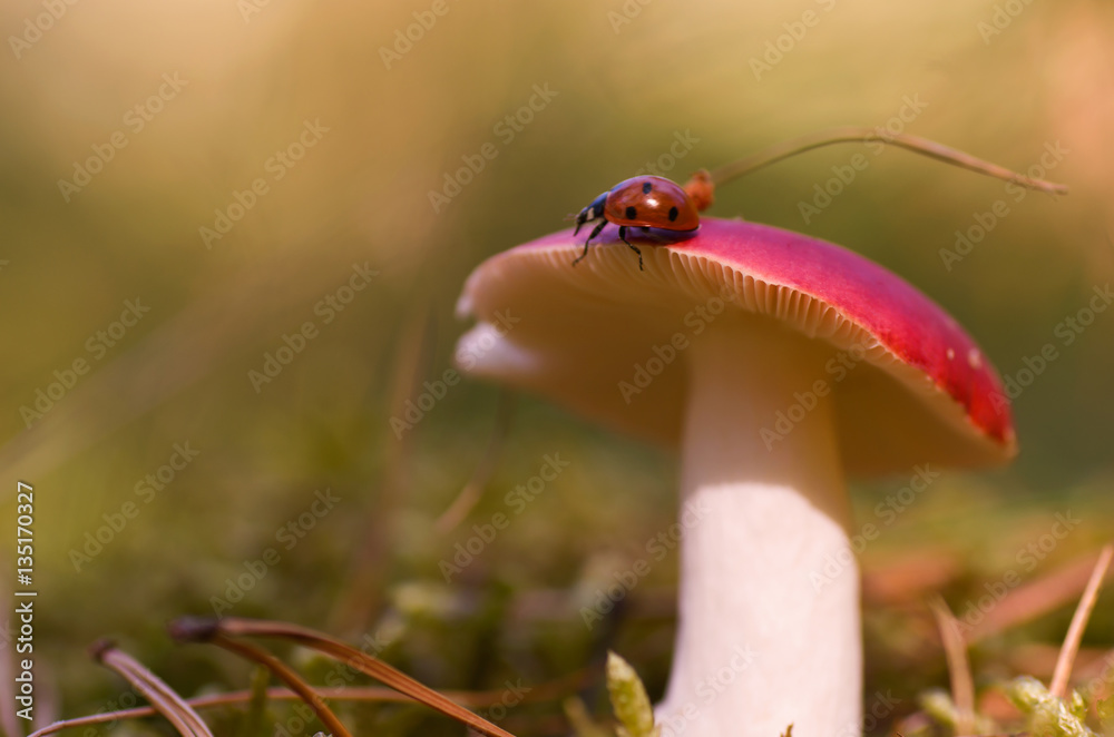 Biedronka na muchomorze, ujęcie makro
