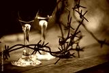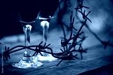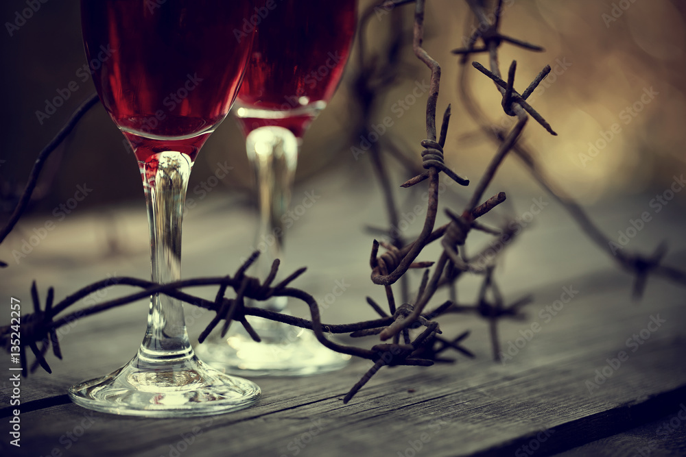 Wine in glasses and a barbed wire.