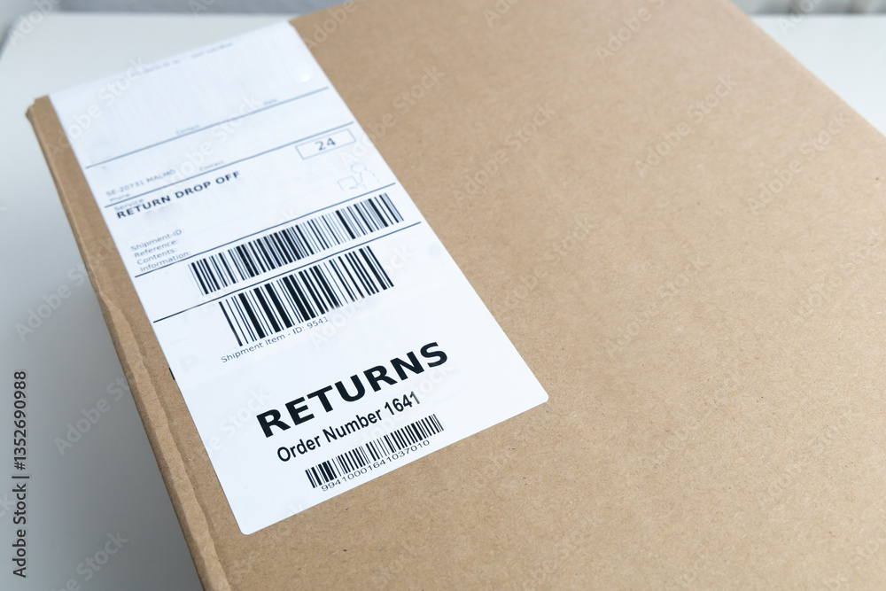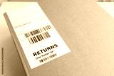 Packaging with return label and barcode for returning