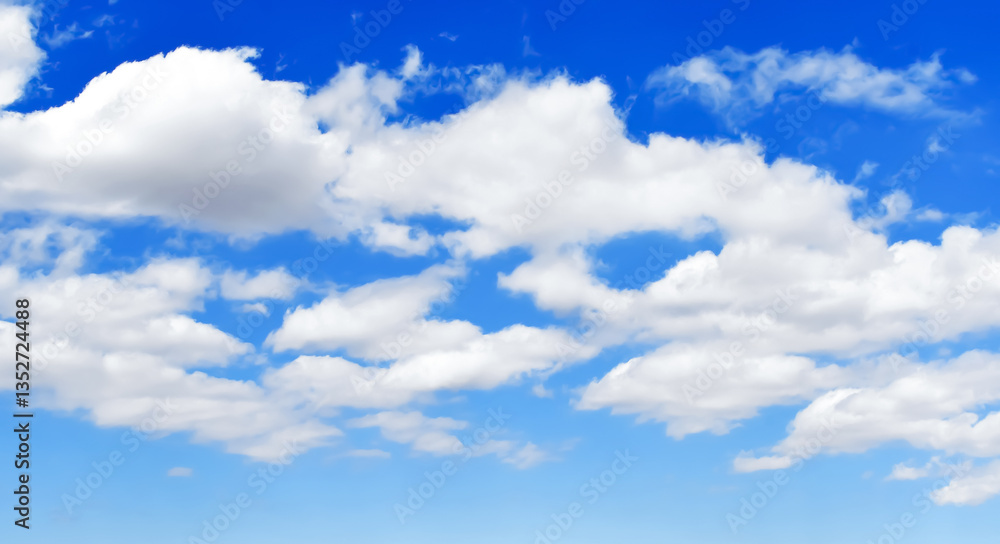 Blue sky with white fluffy cloud. Cumulus clouds background. Cloudscape morning sky. The concepts of freedom of life, never give up and positive though energy.