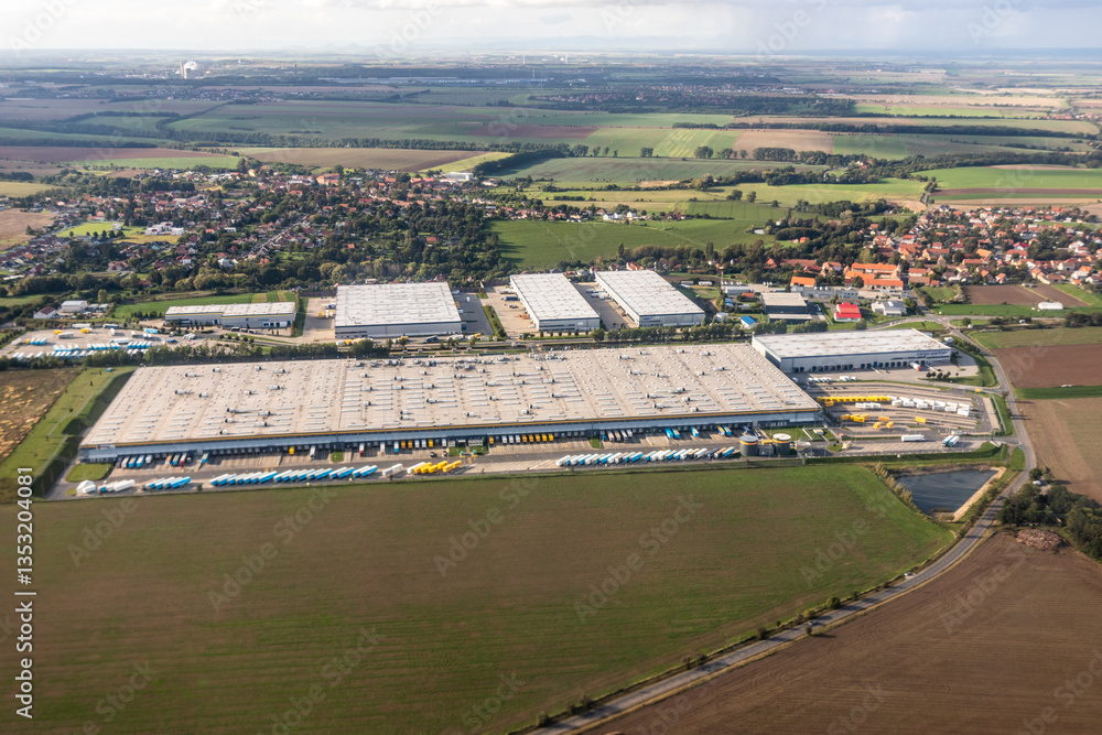 Aerial view of an industrial zone in Dobroviz and Hostoun, Czech Republic