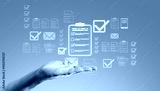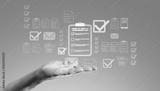 Digital document management concept with holographic interface.