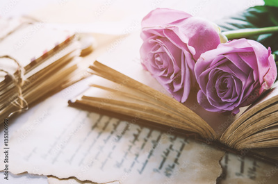 Rose flower with love letters with vintage tone