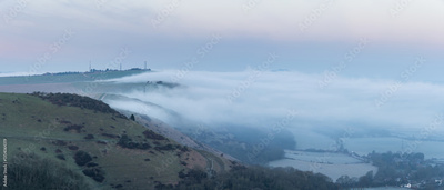 Stunning landscape sunrise image of atmospheric cloud inversion over South Downs escarpment