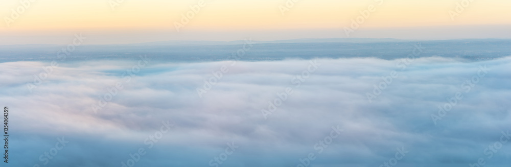 Stunning landscape sunrise image of atmospheric cloud inversion over South Downs escarpment