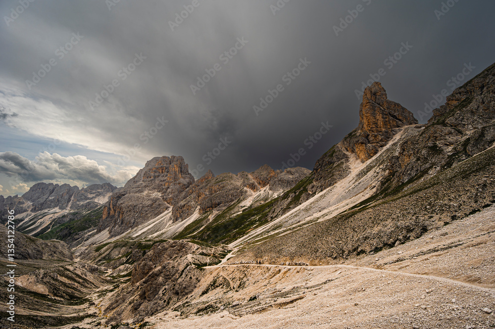 nature sceneries on the trail inside the Catinaccio mointain range, Vico di Fassa, Val di Fassa, Dolomites, Italy