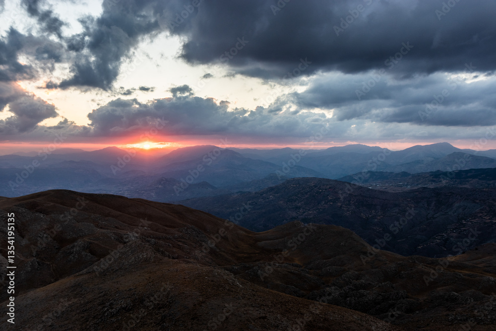 View of sunset from the peak of Mount Nemrut, Turkey