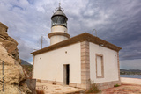 Coastal view of Far de Cala Nans lighthouse near Cadaques in Catalonia, Spain under cloudy skies