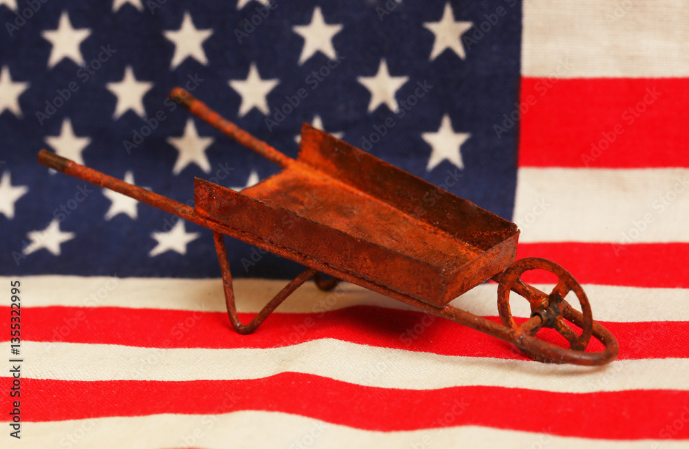 miner's cart on american flag .United States mining concept