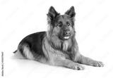 German shepherd long-haired dog lying isolated