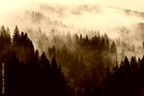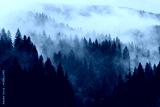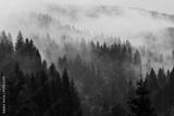 Morning fog on the mountain slopes. Carpathian Mountains. Ukraine, Europe.