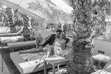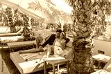 Happy couple relaxing on the outdoor swimming pool
