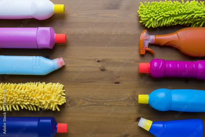 House cleaning product on wood table