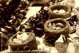 Sweet food Turkish delight on wooden background, assorted locum and candy for decorated backdrop