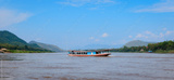 Scenic boat journey along Mekong River in Laos during a clear day in the tropical landscape