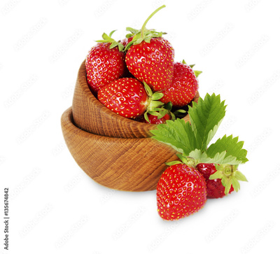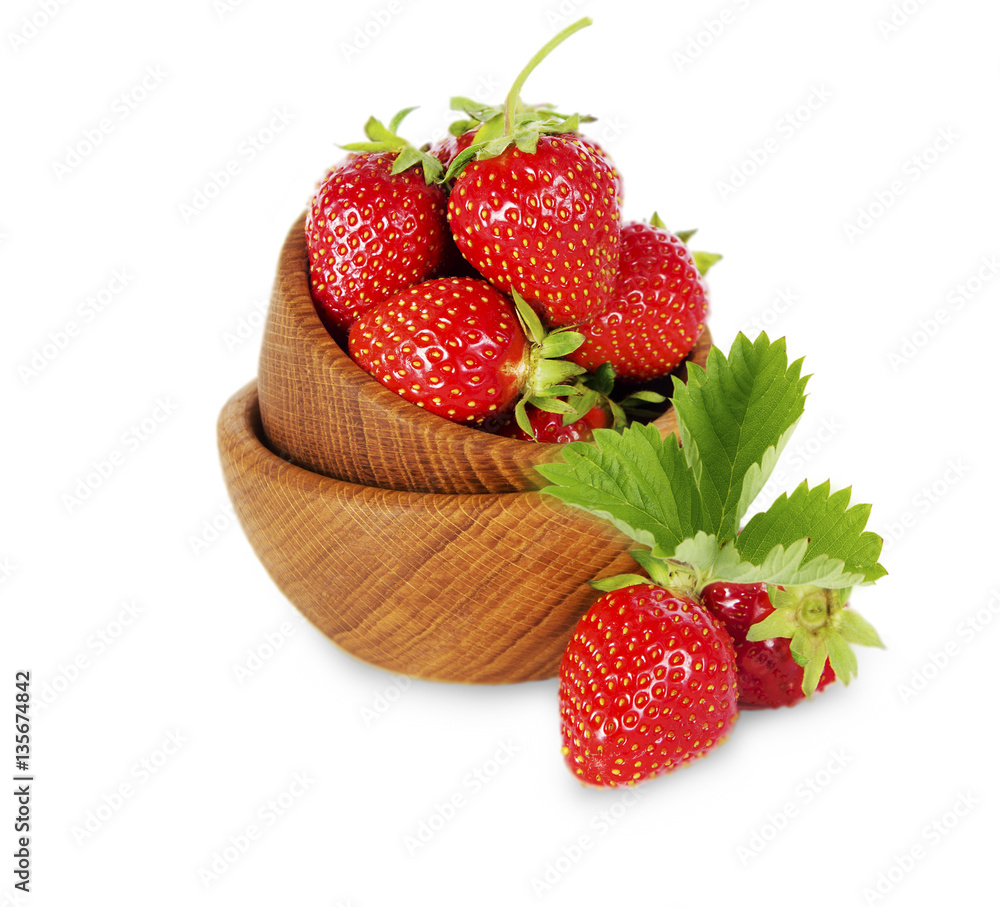 bowl with strawberries isolated on white background. Ripe strawberries close-up. Background berry. Sweet and juicy berry with copy space for text.