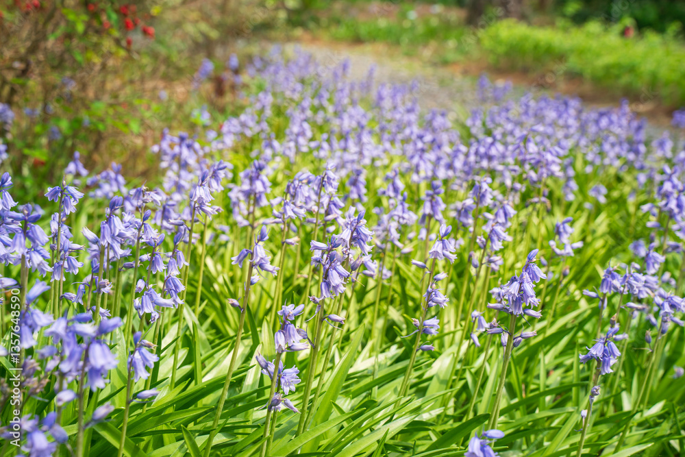 English bluebell flower is showy plant. The purple buds produce bell shapes when blossom. They multiply where they're planted and are a reliable spring bloomer. A nice decoration for beautiful garden