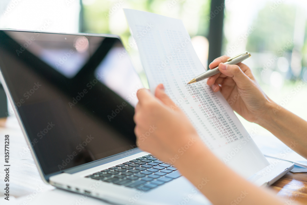 Business people using laptop and Financial charts at meeting off