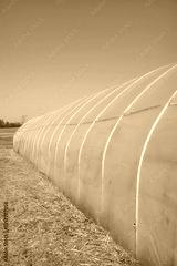 Polytunnel on an organic vegetable farm on sunny day.