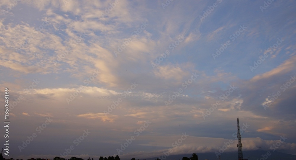 Beautiful afternoon sky with yellow clouds highlighted by sunlight, looks natural and dramatic.