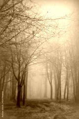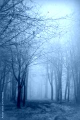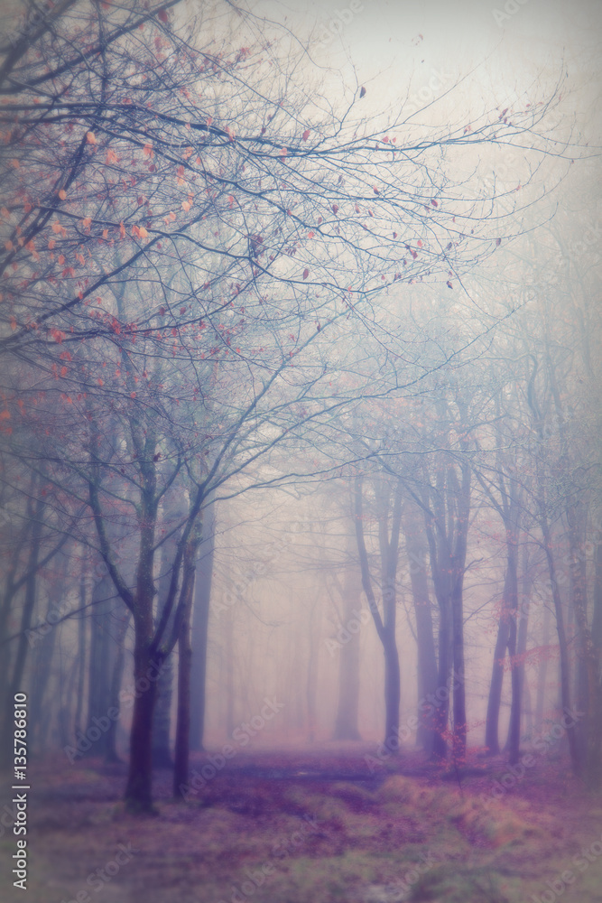 English woodland on a foggy misty morning