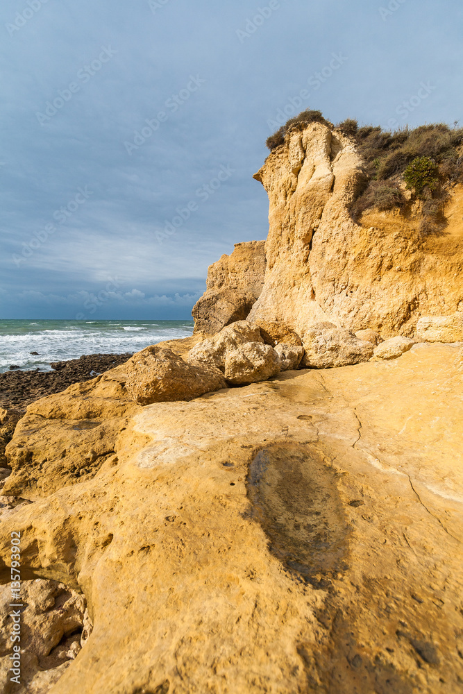 Praia Da Gale Beach with spectacular rock formations on the Algarve coast, Portugal.