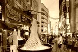 Osaka, Japan - Sep 22 2024, panoramic view of Dotonbori street with people there are many signage on facades of buildings in foreground there is a bowl of noodles with floating chopstics, Osaka, Japan